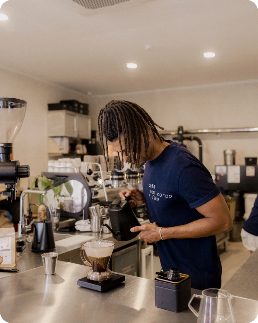 Sua cafeteria, aqui no Brasil ou na Europa, pode ser um lugar onde pessoas encontram acolhimento através do nosso café. Oferecemos cafés especiais de verdade, treinamento para sua equipe e todo o suporte para que você sirva experiências únicas da Baobá Café.